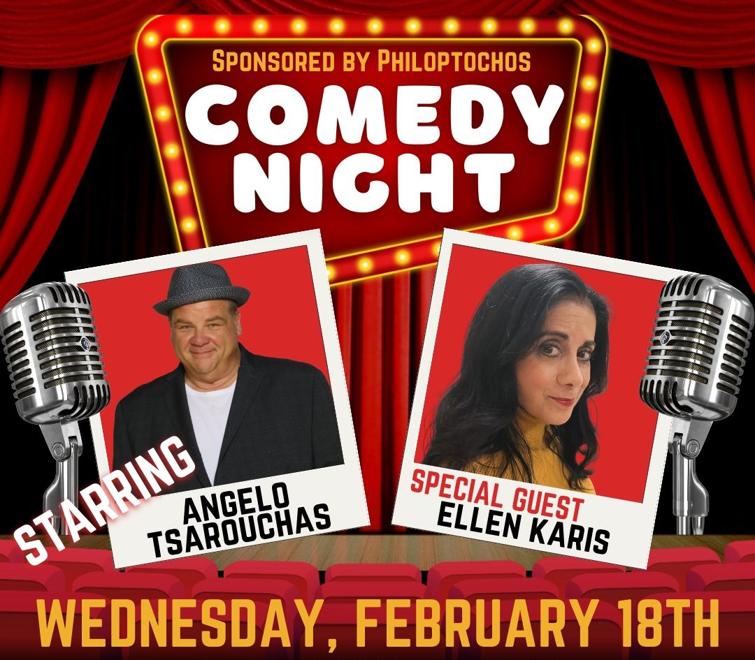 Comedy Night Returns! Join us for a night of hilarity with Angelo Tsarouchas and Ellen Karis. Tickets available January 2, 2026. |
